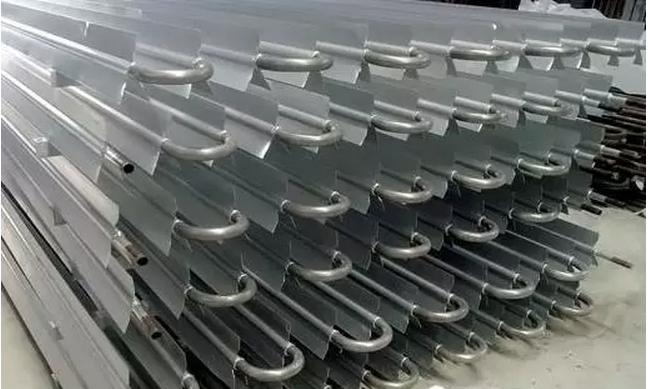 鋁排管材質(zhì)為防腐能力強(qiáng)的鋁合金,表面陽極氧化處理,鋁排結(jié)構(gòu)設(shè)計(jì)為翅片與管一體壓鑄成型,管徑為?25,?28,?32等多種規(guī)格,管內(nèi)有內(nèi)平行細(xì)齒,多片翼片管平行安裝,經(jīng)彎管焊接形成大面積鋁排。
