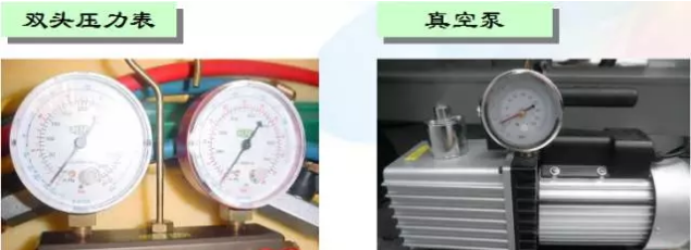 3、用充注導(dǎo)管將帶有調(diào)節(jié)閥的雙頭壓力表及充液罐接到氣閥和液閥的檢測(cè)接頭上。在連接之前,先放出一部分制冷劑,將充注導(dǎo)管內(nèi)的空氣排出。