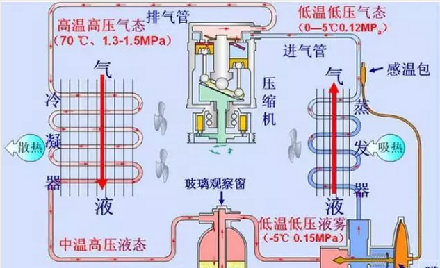 因此雖然視液鏡可作為一種確定制冷劑加注量 的有效工具,但僅通過觀察制冷劑流動來確定制冷劑的正確加 注量仍是不可取的。判斷制冷劑充注是否合適的標準是系統(tǒng)回氣過熱度和液體過熱度。